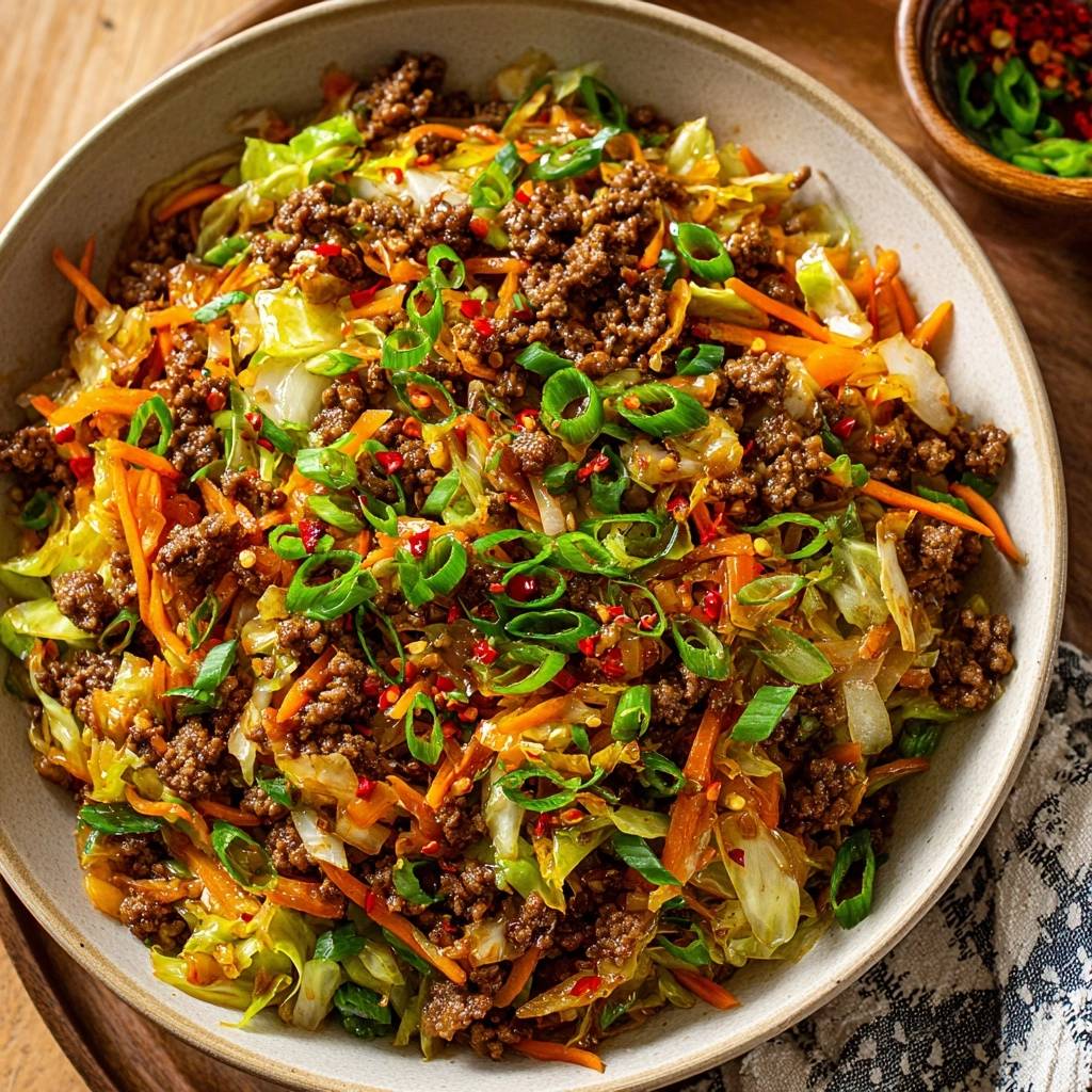Der Duft steigt auf, wenn das Hack brutzelt. Karotten geben Knack, Frühlingszwiebeln Frische. Und der Kohl? Bleibt genau so, wie er soll: knackig und geschmacksintensiv. Probier es aus, du staunst.