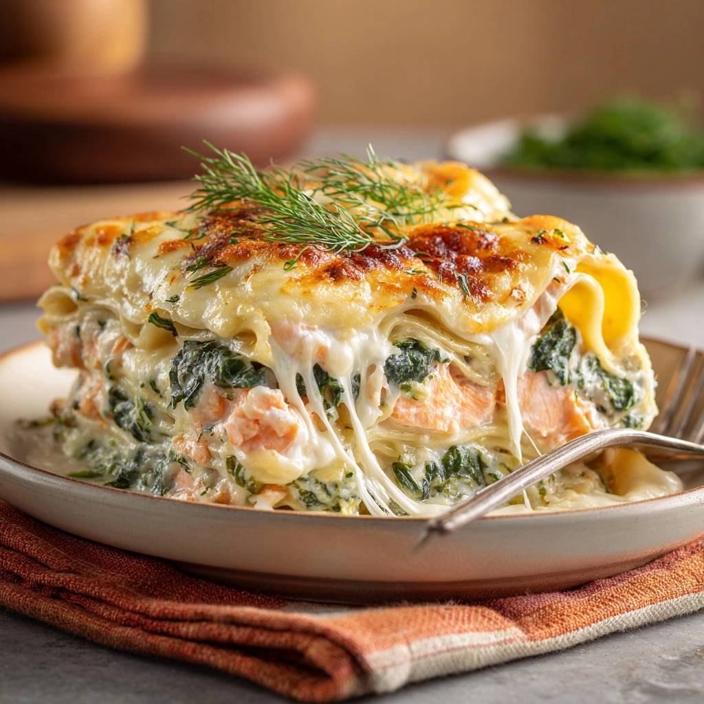 Stell dir vor, du schneidest die erste Portion an und die Schichten halten perfekt zusammen. Kein Wasser läuft raus, stattdessen cremige Béchamel, zarter Lachs und Spinat, der knackig bleibt. Der Duft von Muskat und frischem Dill zieht durch die Küche, und alle am Tisch greifen sofort zu.