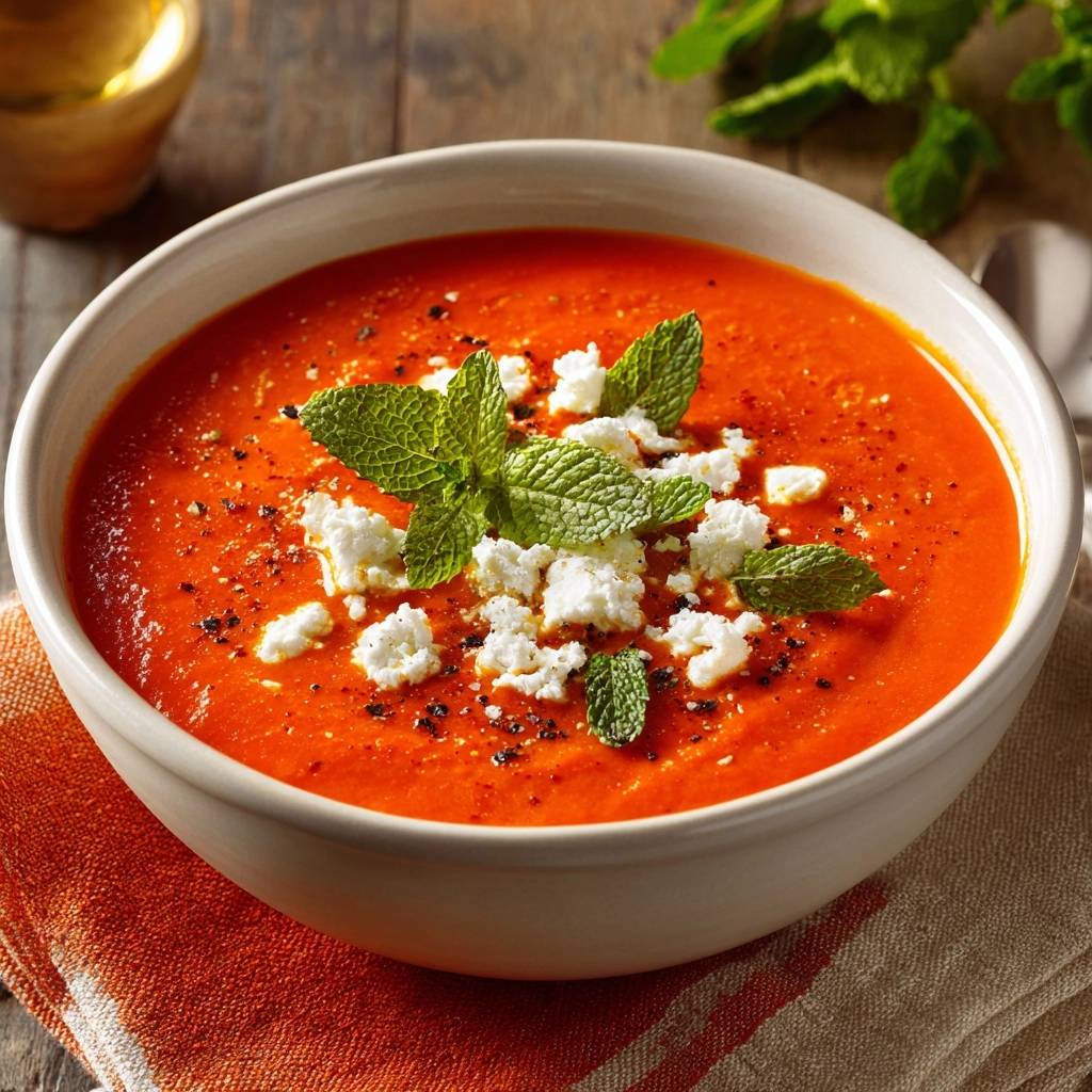 Cremige Tomatensuppe mit Feta und Minze