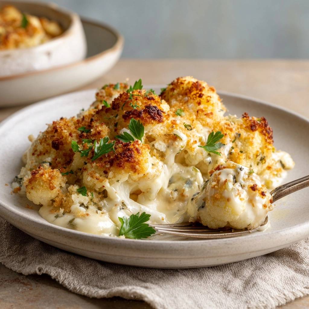 Stell dir vor, du schaufelst die Gabel in diesen Auflauf. Die Kruste knackt so herrlich, dass du lächeln musst. Drinnen wartet cremiger Blumenkohl, der sich mit Käse umschlingt und jeden Bissen zum Genuss macht.