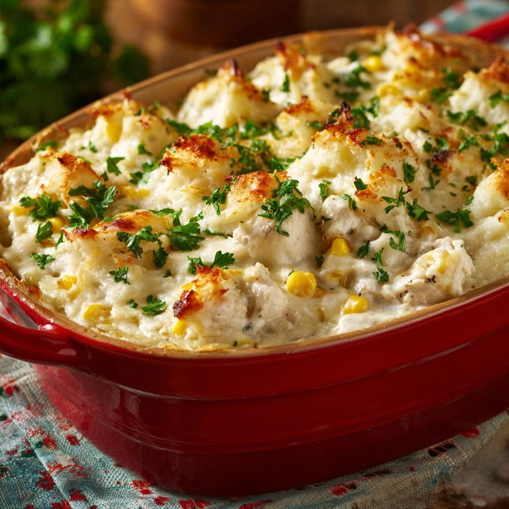 Genau deshalb habe ich an diesem Rezept gefeilt, bis es absolut perfekt war. Dieser Hähnchen-Mais-Auflauf ist echtes Soulfood, das hält, was es verspricht. Er ist so gemütlich wie eine warme Decke an einem kühlen Abend.