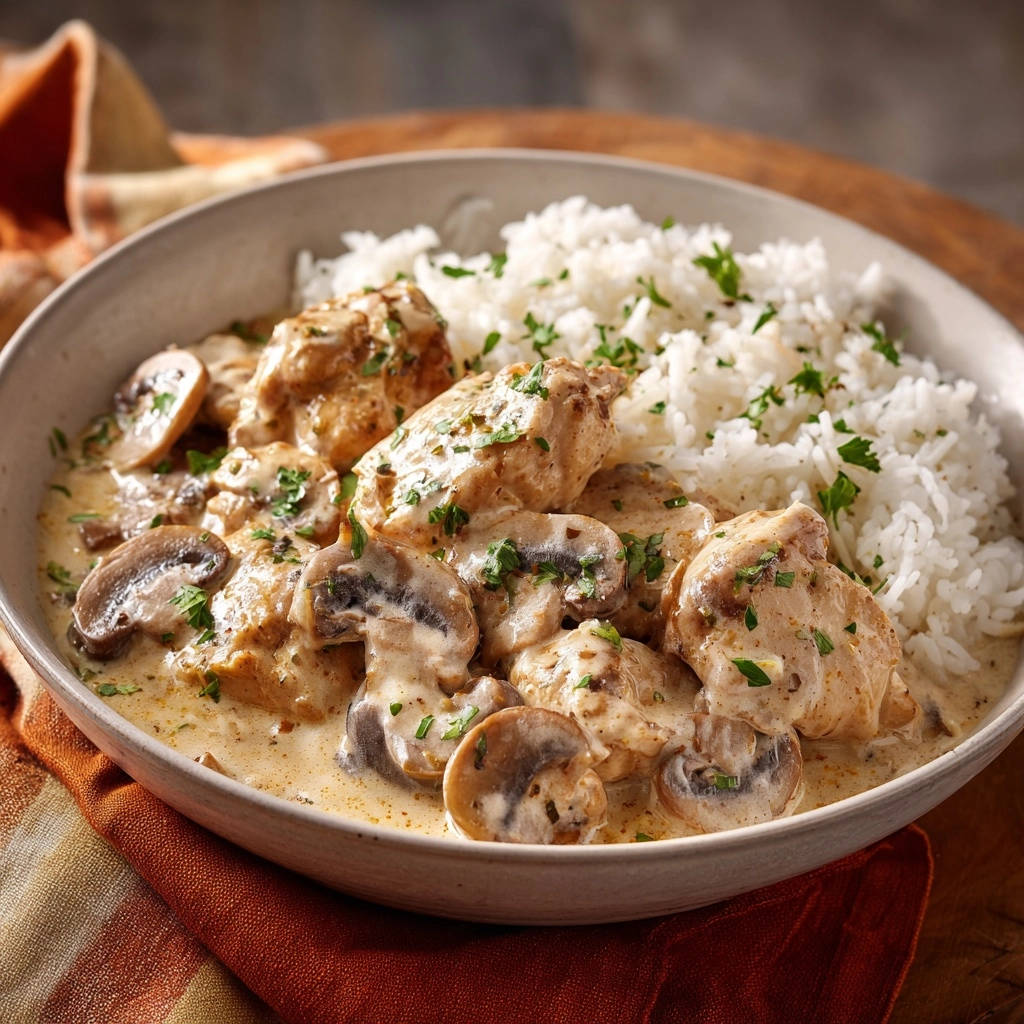 Cremiges Pilz-Hähnchen mit Reis: Nie wieder trocken, immer zart!