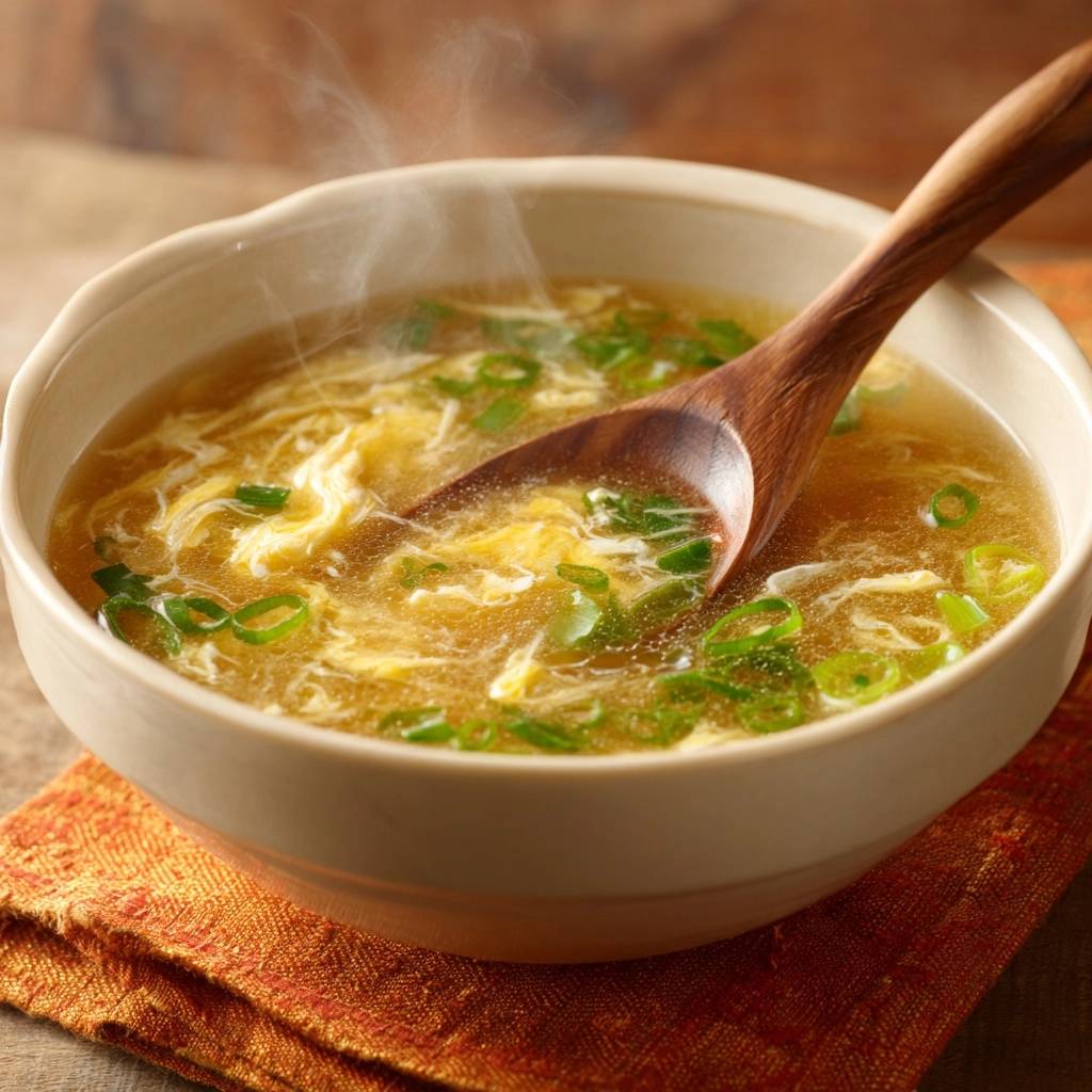 Stell dir vor, du löffelst die erste Kelle dieser Eierblumensuppe. Die hauchdünnen, seidigen Eierfäden schweben in der klaren, duftenden Hühnerbrühe. Jeder Bissen wärmt dich von innen, mit einem Hauch Frische von den Frühlingszwiebeln.