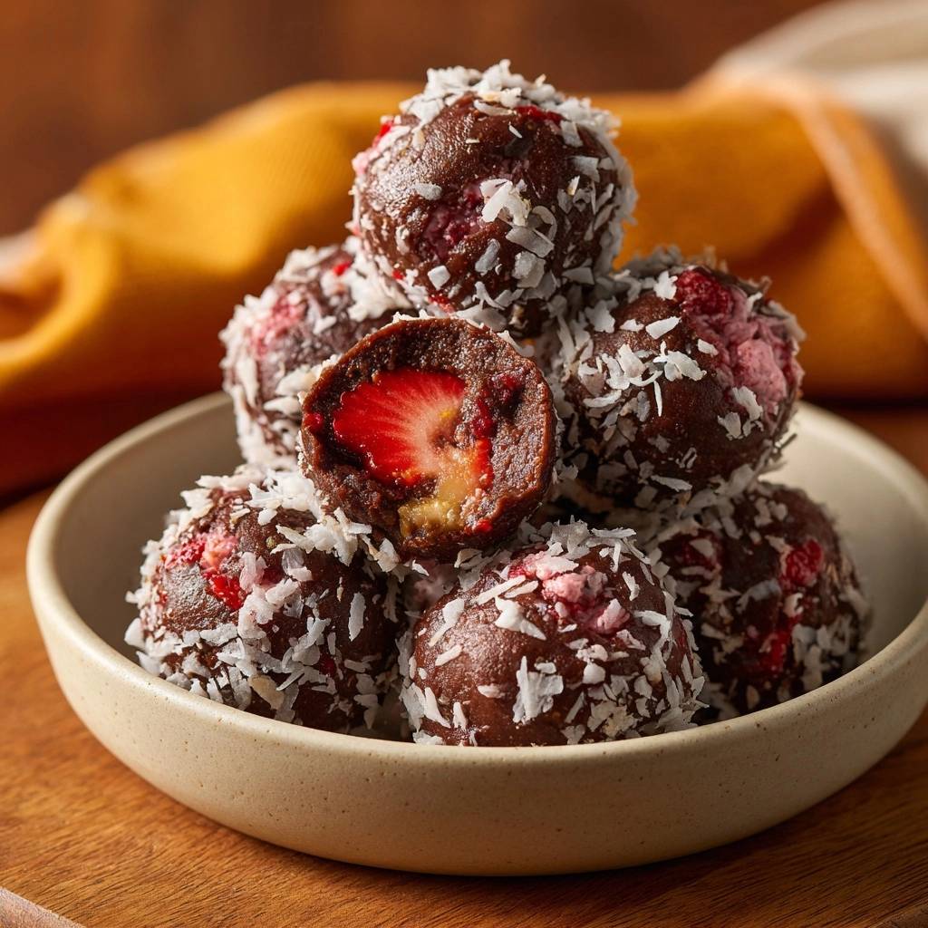 Stell dir vor, du beißt in einen Erdbeer-Kokos-Schoko-Ball ab. Draußen knackt die Schokolade mit Kokos, innen explodiert saftige Erdbeere und Himbeere. Und das Beste: Die Masse hält zusammen, bröselt nicht auseinander. Ich hab das Problem so oft gehabt, besonders als Mutter von drei Kindern, die immer schnelle Snacks wollen. Früher sind meine Balls beim Rollen zerfallen, total frustrierend.