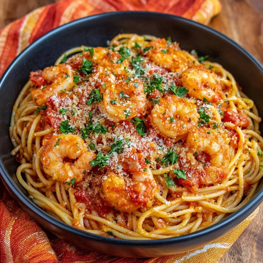 Garnelen-Spaghetti in Tomatensoße – Saftige Shrimps!