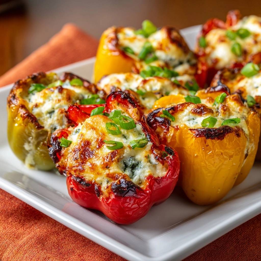 Die gefüllten Paprika mit Blauschimmelkäse werden nie wässrig, dank Salz-Trick. Cremig, aromatisch, immer ein Hit.