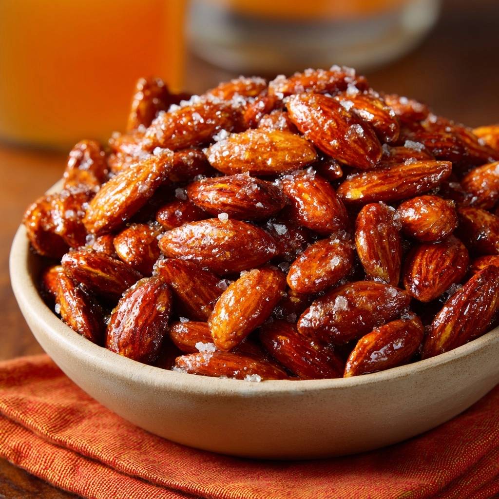 Der erste Biss in diese Gebrannte Mandeln mit Meersalz knistert so herrlich. Die glänzende Karamellschicht bricht knackig, und das raue Meersalz hebt den süßen Geschmack perfekt raus. Du spürst die cremige Nussigkeit, die sich mit der salzigen Note mischt.