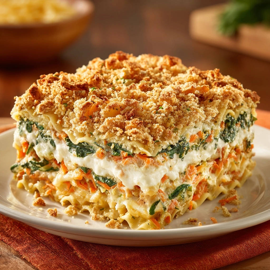 Diese Gemüse-Lasagne mit knuspriger Bröselkruste ist mehr als nur ein Gericht; sie ist ein Erlebnis für alle Sinne.