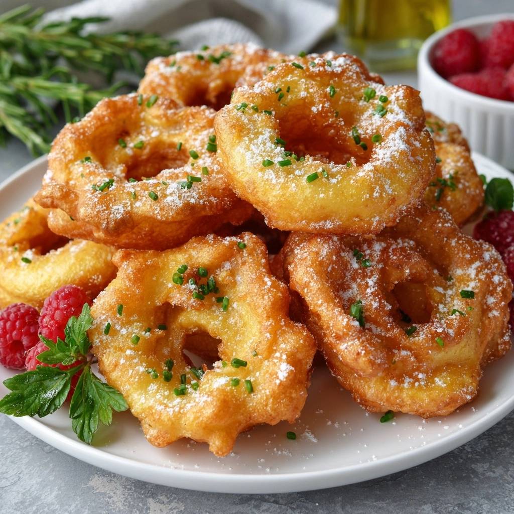 Stell dir vor, du beißt durch eine hauchdünne, krachend krosse Hülle direkt in einen weichen, leicht säuerlichen Apfelkern. Der Duft von warmem Teig und fruchtigem Aroma erfüllt die Küche, während der Puderzucker auf der Zunge schmilzt.