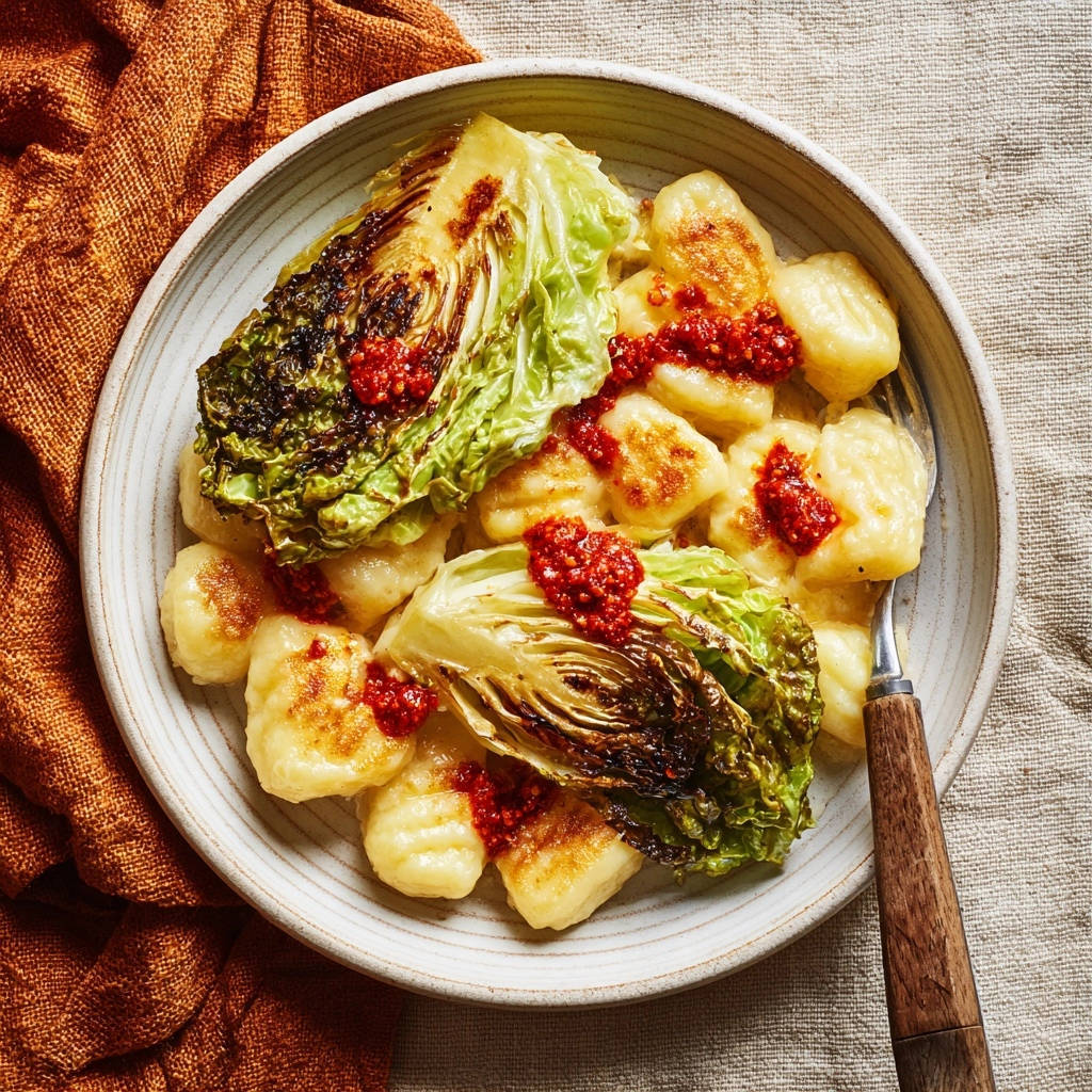 Das Gericht lebt von der Kontrasttextur aus weichem Kohl, knusprigen Gnocchi und cremiger Sauce, daher ist der sofortige Genuss Pflicht.