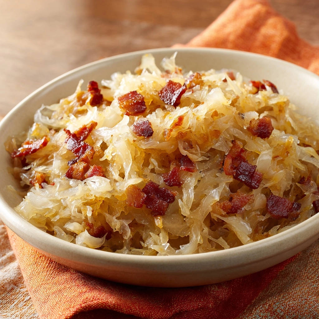 Ob als Hauptgericht oder Beilage, dieses Goldbraune Sauerkraut mit krossem Bacon ist vielseitig einsetzbar und lässt sich nach Belieben anpassen.