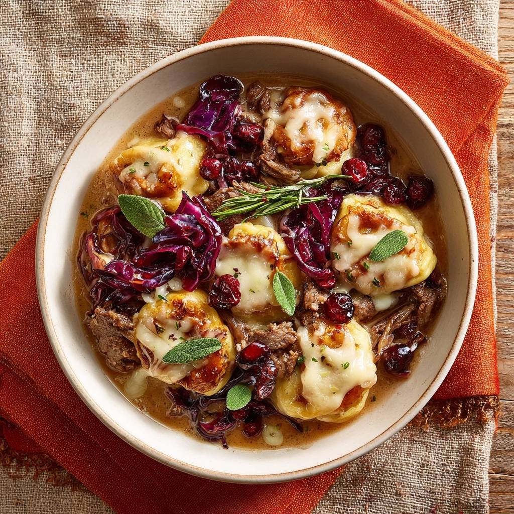 “`Herbstliche Ravioli mit Rindfleisch, Rotkohl und Cranberries