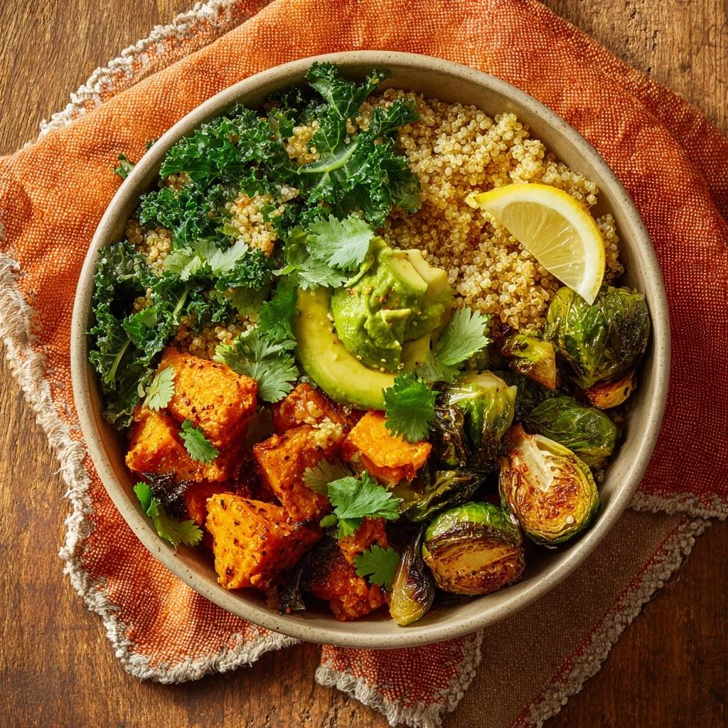 Stell dir vor, du beißt in diesen Herbstlichen Quinoa-Power-Bowl und spürst den Kontrast: cremige Avocado umhüllt knackigen Rosenkohl, der innen saftig bleibt, außen goldbraun knuspert. Der Duft von gerösteten Süßkartoffeln mischt sich mit frischem Koriander, und der erste Bissen explodiert vor Herbstfarben und Geschmack.