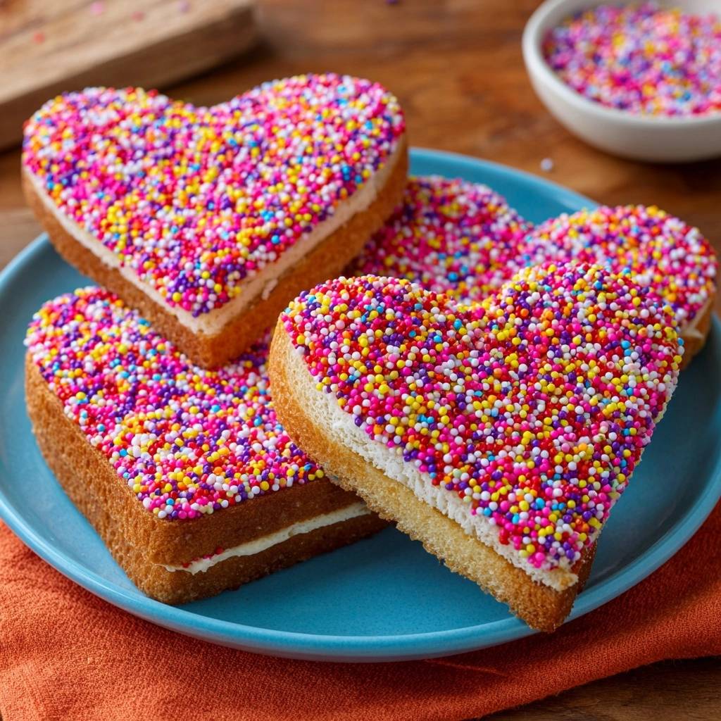 Der erste Biss in diese herzförmigen Streusel-Sandwiches ist pure Freude. Knackiges Toastbrot umhüllt eine cremige Butterfüllung, und die bunten Streusel kleben fest wie angegossen. Bei meiner letzten Kinderparty haben die Kids sie in Sekunden verputzt, ohne dass ein Krümel abfällt.