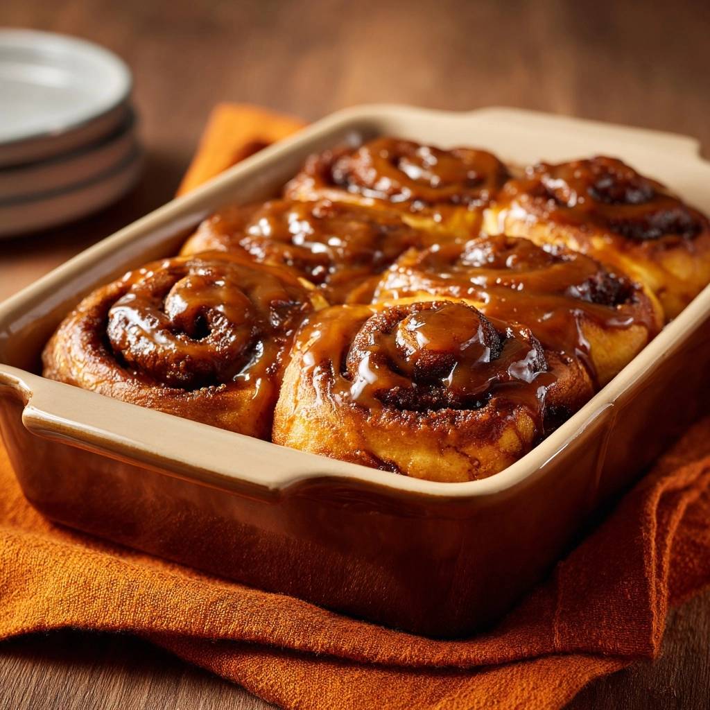 - 25 Minuten backen, bis goldbraun. Aus dem Ofen nehmen, 5 Minuten ruhen lassen – Karamell zieht in die Schnecken. Heiß servieren. Guten Appetit!