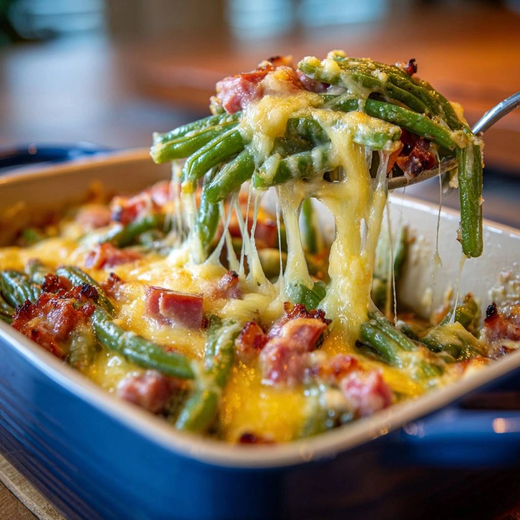 Der Duft von knusprigem Speck und schmelzendem Käse zieht durch die Küche, als du den Auflauf aus dem Ofen holst. Die grünen Bohnen knacken bei jedem Bissen, frisch und bissfest. Kein matschiges Gekochtes mehr, sondern pure Freude.