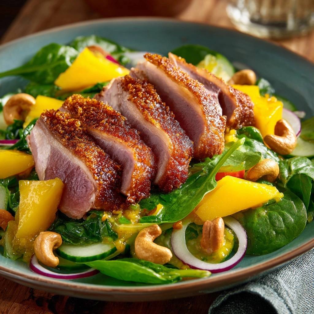 Knusprige Entenbrust auf Mangosalat