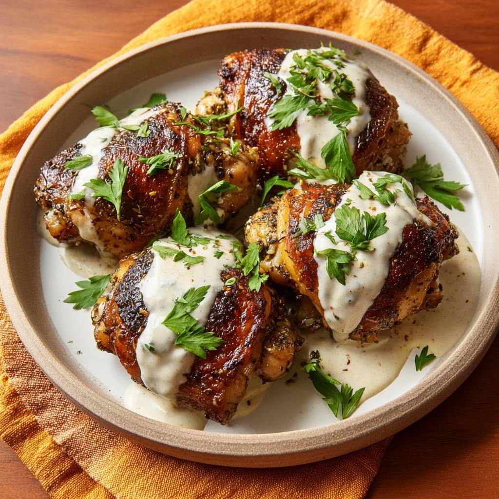 Knusprige Gewürz-Hähnchenschenkel mit Joghurt-Kräuter-Soße