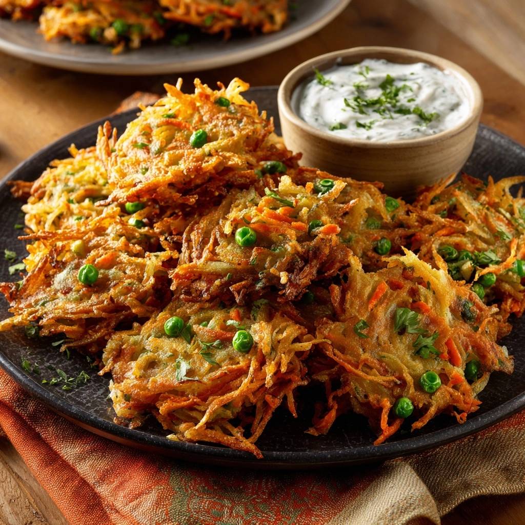 Stell dir vor, du hebst den ersten knusprigen Karotten-Erbsen-Rösti an den Mund. Draußen knackt die goldene Kruste, drinnen explodiert die Süße der Karotten mit der frischen Erbsennote. Der Duft von brutzelndem Gemüse erfüllt die Küche, und dein Dip wartet cremig daneben.