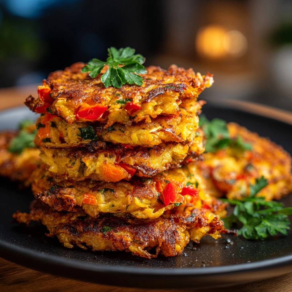 Der erste Biss knistert so herrlich knusprig, und dann explodiert die Süße von Karotten mit der frischen Paprika im Mund. Du spürst die Saftigkeit innen, während außen alles goldbraun und perfekt hält. Ich kenn das Frustgefühl mit matschigen Puffern nur zu gut, die auseinanderfallen und fade schmecken.