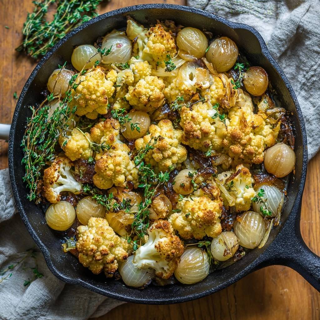 Knuspriger Ofen-Blütenkohl mit Perlzwiebeln & Thymian