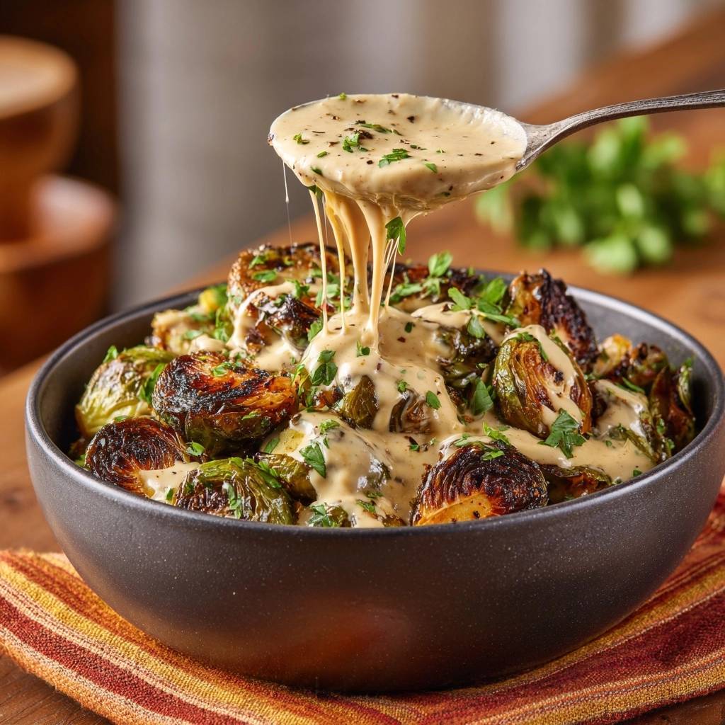 Knuspriger Ofen-Rosenkohl mit cremiger Käsesoße