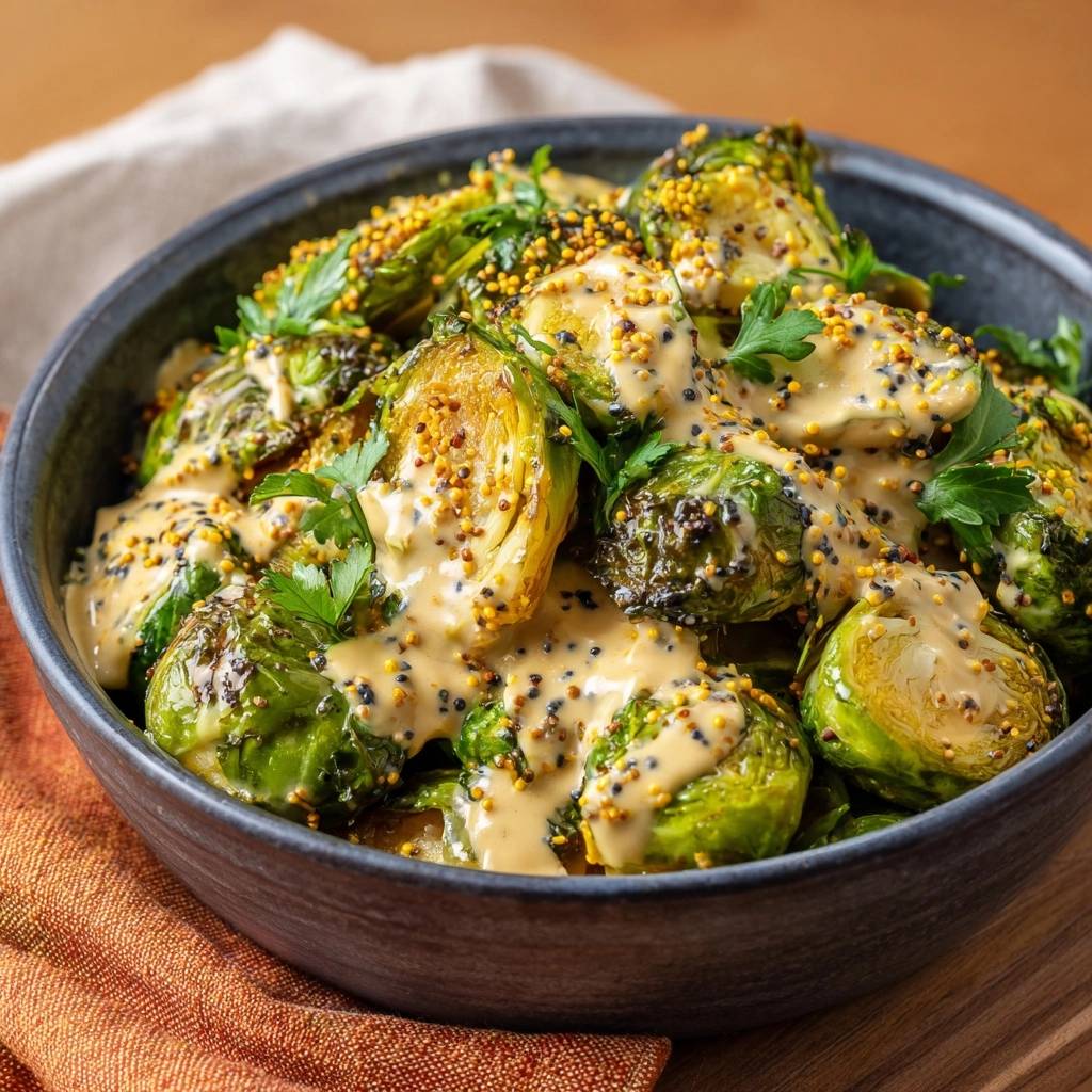 “`Knuspriger Rosenkohl mit Senf-Creme