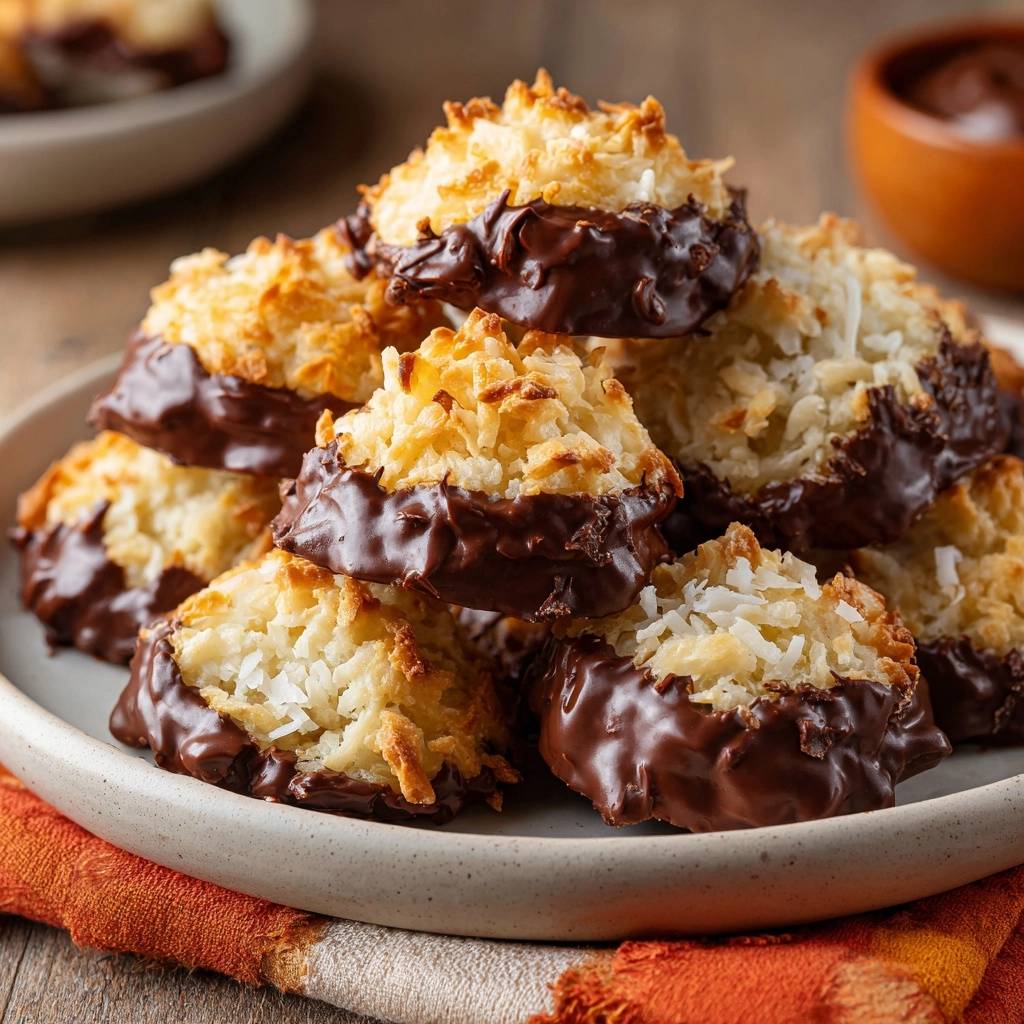 Stell dir vor, du beißt in eine Kokos-Makrone ab. Draußen knackig goldbraun, innen fluffig wie eine Wolke, und dann der Schokoladenmantel, der schmilzt und alles abrundet. Der Duft von geröstetem Kokos hängt in der Küche, süß und tropisch. Genau so schmecken sie, wenn du den Trick kennst.