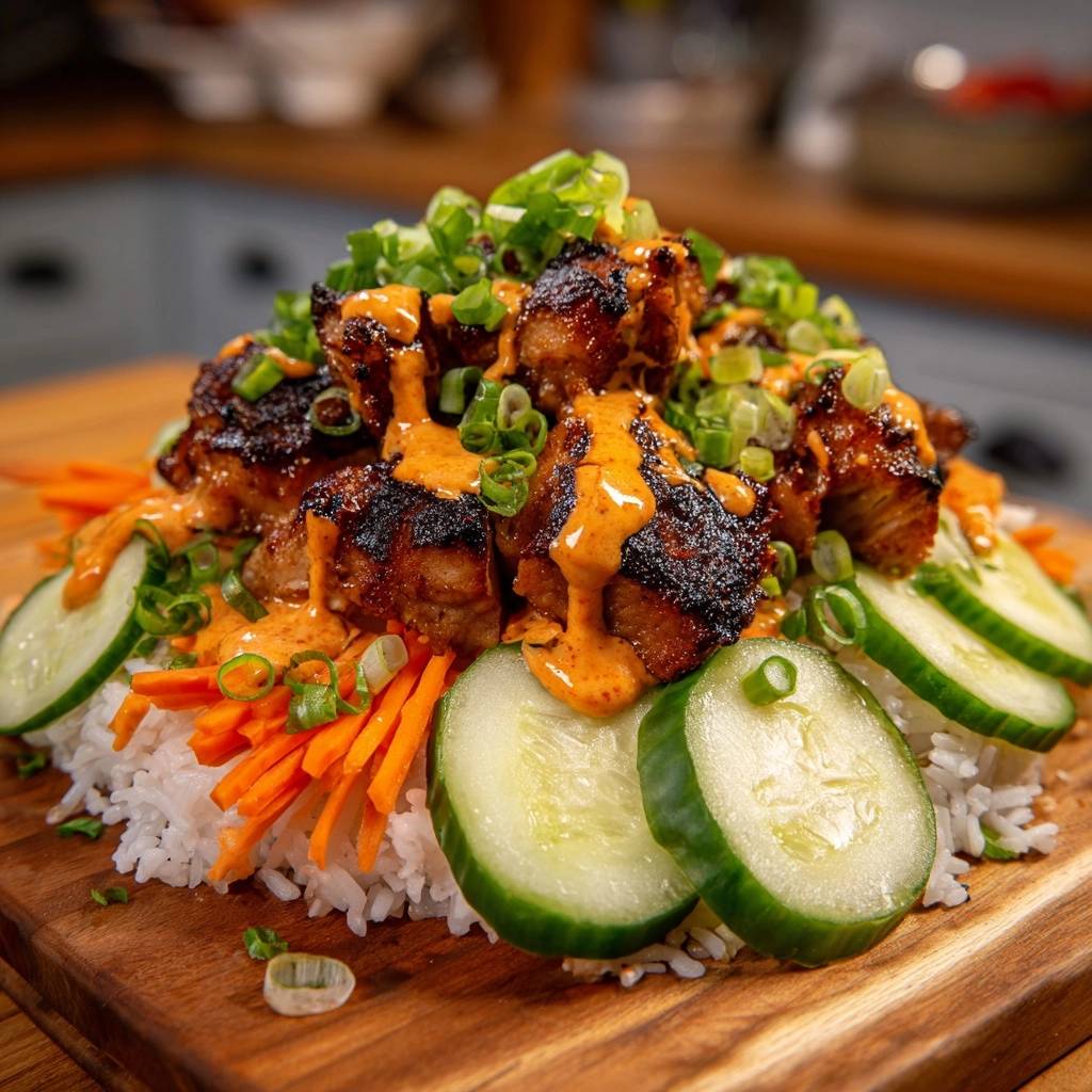 Reis unten, frisches Gemüse drauf, sticky Hähnchen obendrauf. Jeder Löffel balanciert Knusprigkeit, Süße und Frische. Du wirst sie immer wieder kochen wollen, versprochen. Lass uns loslegen.