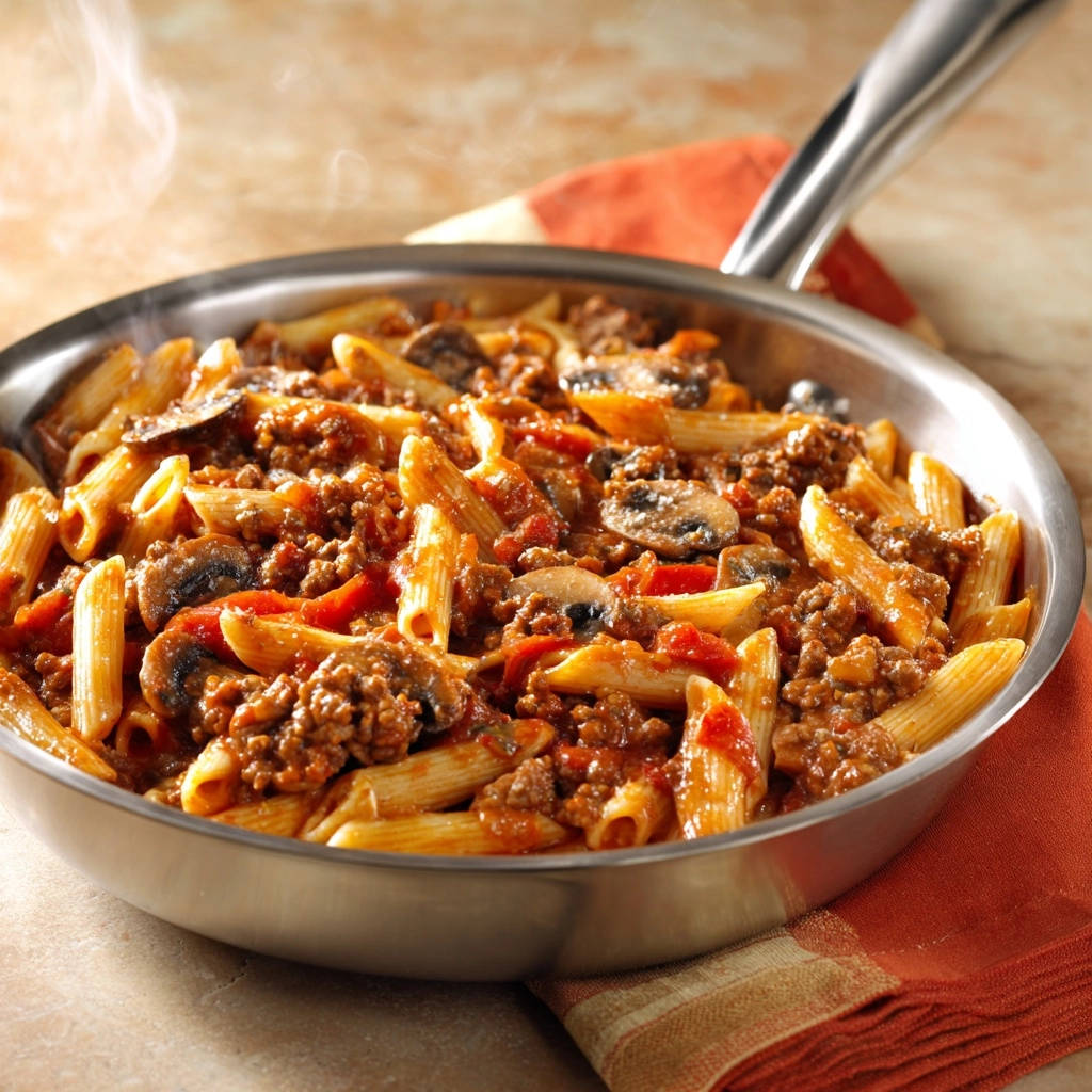 Nudelpfanne mit Hack und Pilzen: Das Geheimnis der haftenden Soße