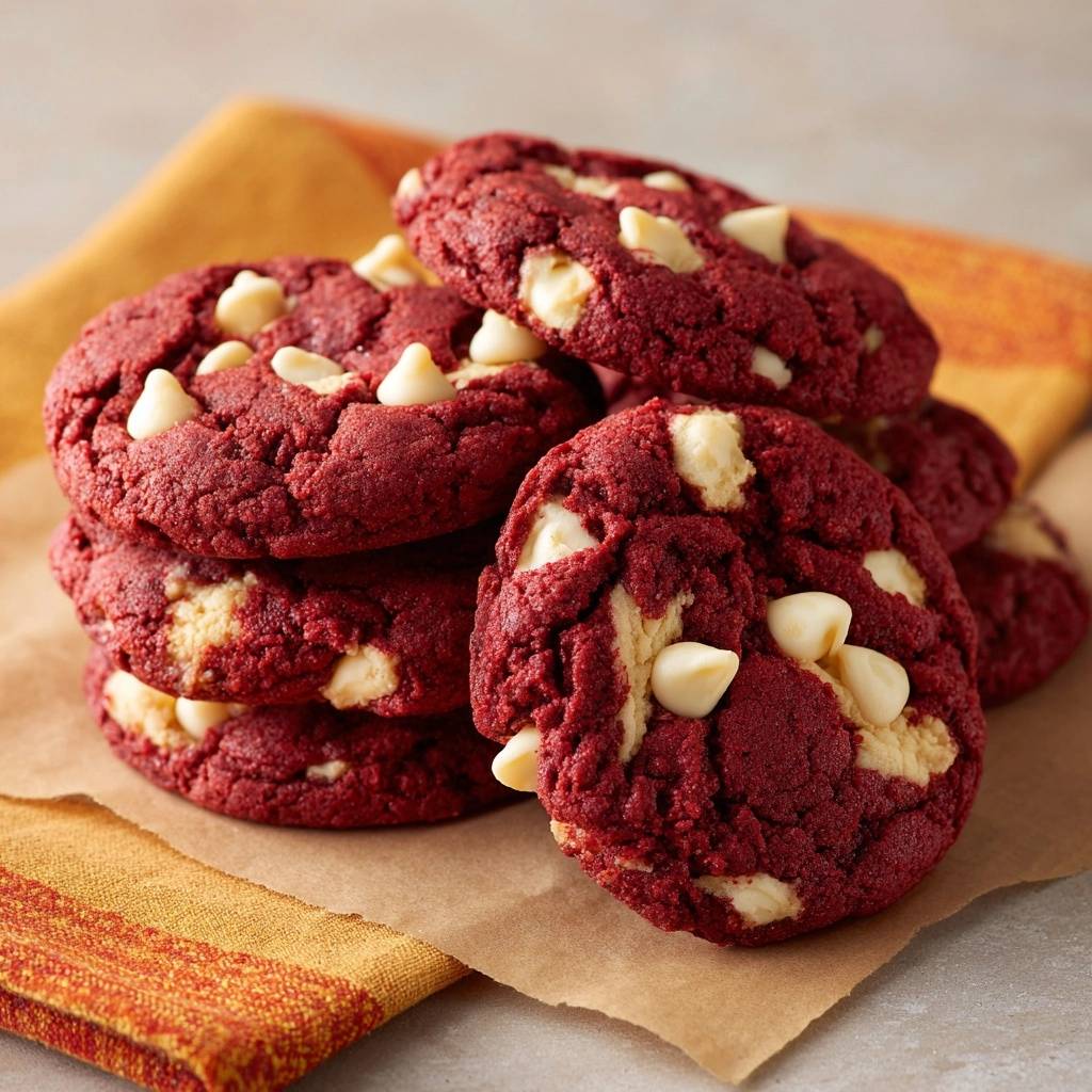 Der Schlüssel? Ein simpler Kühltrick, der die Butter stabilisiert und verhindert, dass alles beim Backen schmilzt und platt wird. Du bekommst intensive rote Farbe durch Gel-Lebensmittelfarbe, zarte Chewy-Textur und den perfekten Biss von den Chips. Probiere es aus, back einfach mit und genieße den ersten Bissen – du wirst süchtig danach.
