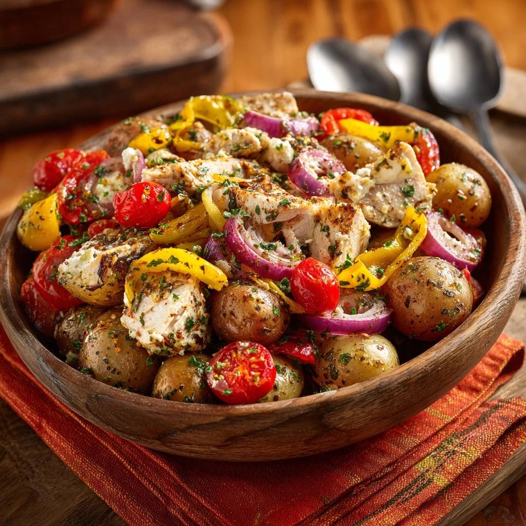 Rustikaler Hähnchen-Gemüse-Ofen mit Feta – Saftig!