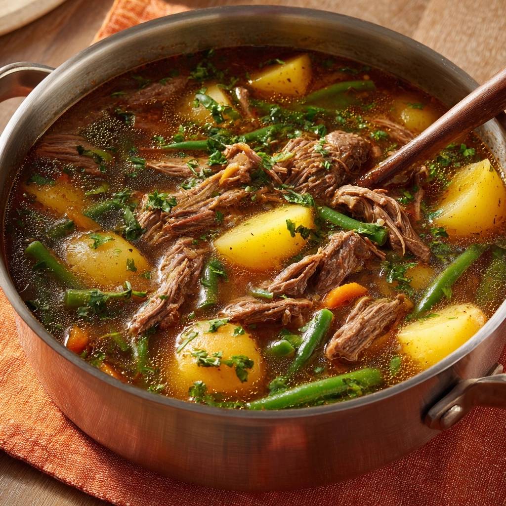 Die Brühe wird durch Zwiebeln, Knoblauch und Paprika so intensiv. Grüne Bohnen bringen Frische, Karotten Süße. Jeder Löffel ist wie eine Umarmung. Probier es aus, und dein Rindfleisch-Eintopf wird zum Familienhit.