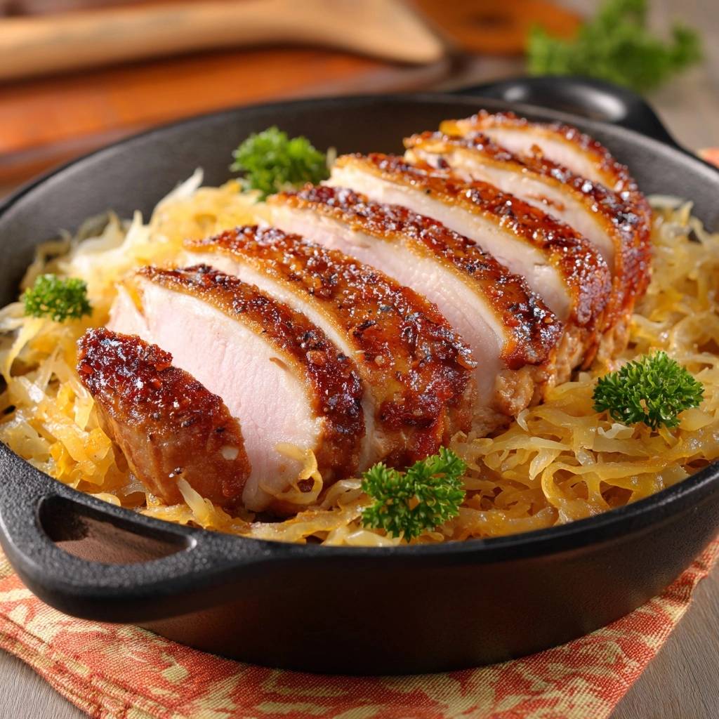 Saftiges Hähnchen auf Gold-Sauerkraut – Nie wieder trocken!