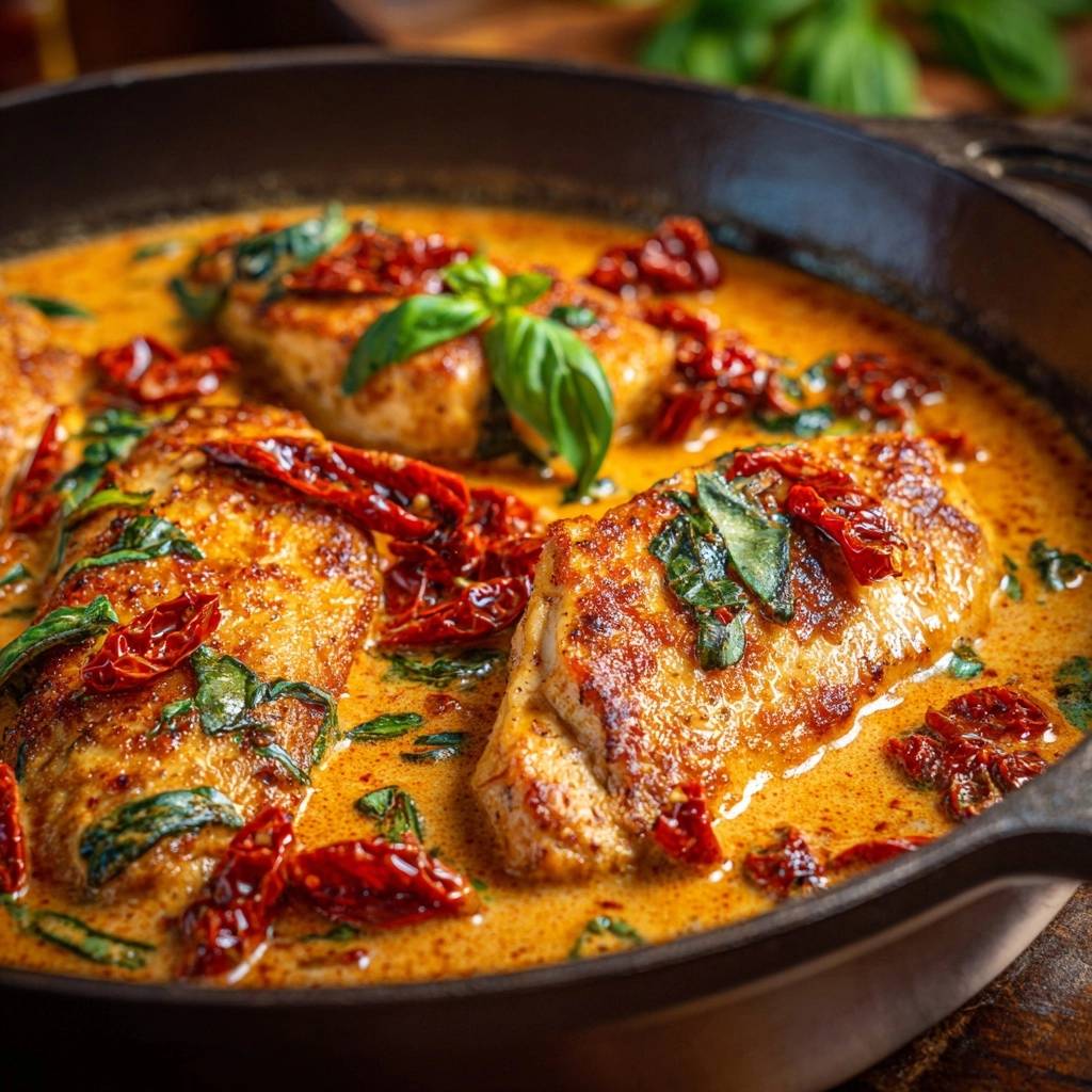 Saftiges Hähnchen mit Sonnentomaten-Cremesoße – Rezept
