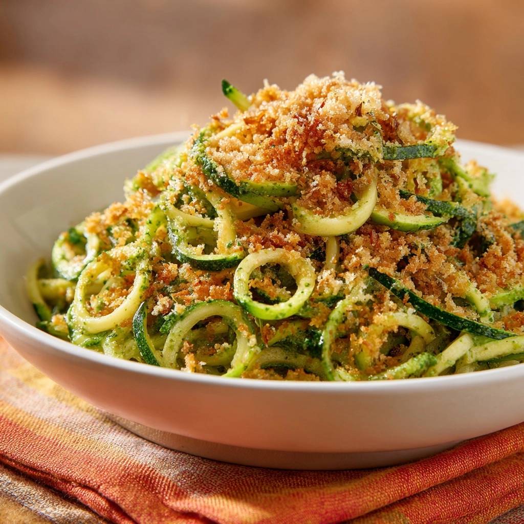 Stell dir vor, du beißt in Zucchini-Nudeln mit Pesto und knusprigen Krümeln, die perfekt knackig sind. Der frische Basilikumduft steigt auf, das Pesto umhüllt jede Nudelzucchini, und die Krümel knistern unter deinen Zähnen. Ich hab das so oft vermasselt, dass die Zoodles matschig wurden und fade schmeckten.